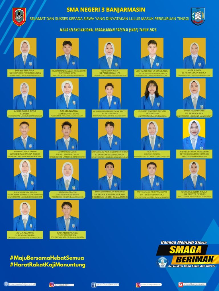 Selamat untuk siswa yang lulus keperguruan tinggi melalui jalur SNBP 2026